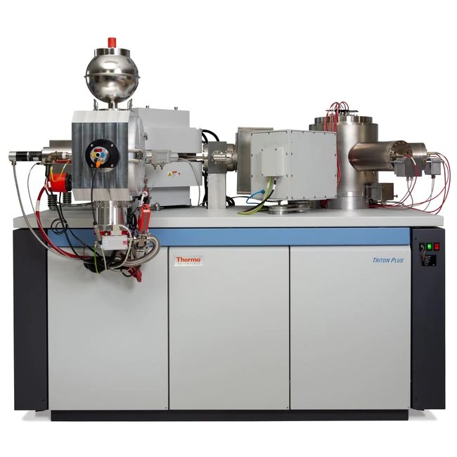 The TIMS laboratory houses two MC-TIMS Thermo Scientific Triton Plus and Triton XT and a sample loading laminar flow hood. The Triton Plus has nine Faraday cups and a central SEM. The Faraday cups can be connected to 10 different amplifiers using a ‘Virtual Amplifier’ relay matrix. The amplifiers are equipped with two types of resistors; 1011 and 1013 Ω used for analysis of conventional and small beam sizes, respectively. The 1013 Ω resistors have 100 times higher signal output whereas they have relatively lower noise levels, resulting in increased precision when analysing small beams. We have six conventional 1011 Ω and four 1013 Ω amplifiers installed, and specialise in analysing Sr, Nd, Sm and Pb isotopes in small samples. The set-up, in combination with ultra-low blank chemical separation allow precise analyses of samples as small as 2 ng Sr, 30 pg Nd and 250 pg Pb. On the second Triton (XT), equipped with nine 1011 and one 1013 Ω amplifiers we routinely analyse the isotopic composition of larger amounts of Sr, Nd, Sm, Pb automatically.